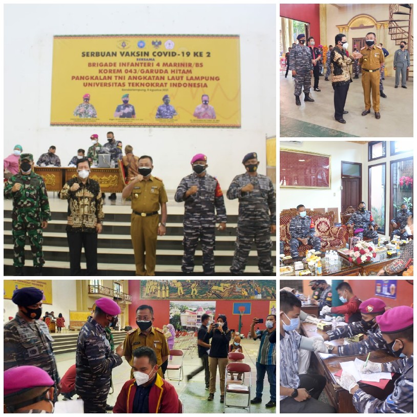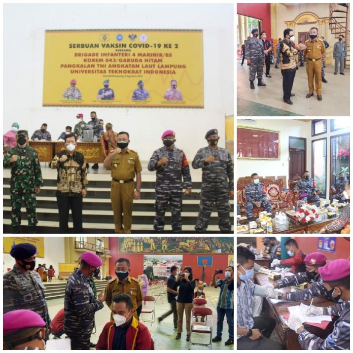 Lampung (HO) – Bekerja sama dengan Universitas Teknokrat Indonesia (UTI) Korps Marinir TNI AL Brigade Infanteri (Brigif) 4 Marinir/BS Wilayah Lampung kembali laksanakan serbuan Vaksinasi dosis ke 2.