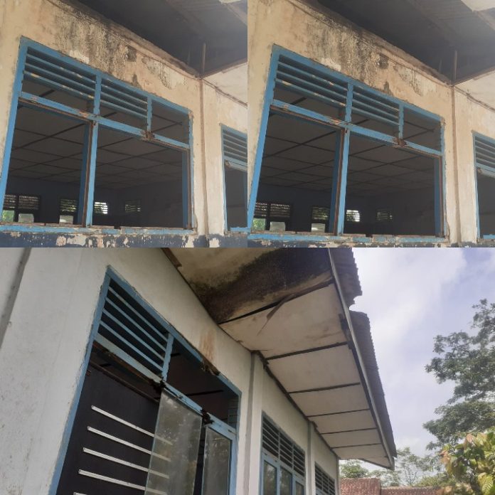 Pesawaran (RN) – Ruang kelas Sekolah Dasar Negeri (SDN) 11 Gedong Tataan (Geta) Kabupaten Pesawaran butuh perbaikan segera. Banyak pintu, jendela kelas yang lapuk, atap sudah rusak, sebagian jebol.