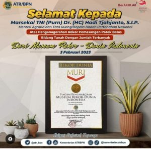 “Sudah dilaksanakan Gerakan Masyarakat Pemasangan Tanda Batas secara serentak di seluruh Indonesia, sebanyak satu juta batas tanah atau patok. Jumlah satu juta patok ini menjadi angka baru yang dicatatkan dalam Museum Rekor-Dunia Indonesia (MURI) sebagai “Rekor Pemasangan Patok Batas Bidang Tanah dengan Jumlah Terbanyak,” jelasnya.