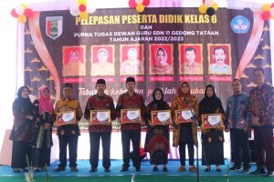 Pesawaran (HO) – Sekolah Dasar Negeri (SDN) 11 Gedong Tataan Kabupaten Pesawaran menggelar kegiatan Perpisahan Siswa-siswi Tahun ajaran 2022-2023, dan purna tugas sebanyak enam guru yang telah bertugas di SDN 11 Gedong Tataan, di gelar di halaman sekolah setempat, Desa Sukabanjar, Jum’at (16/6/2023).