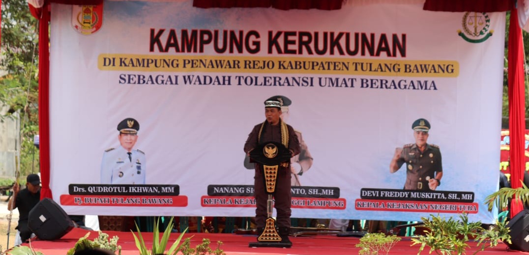 Lampung (RN) – Kepala Kejaksaan Tinggi Lampung Nanang Sigit Yulianto, S.H., M.H., meresmikan Kampung Kerukunan Penawar Rejo. Yang berada di Kecamatan Banjarmargo Kabupaten Tulangbawang.