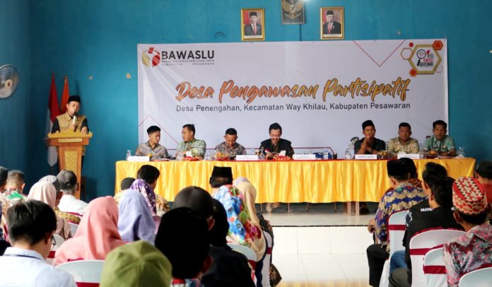 Pesawaran (RN) – Guna meningkatkan dan pemahaman dan partisipasi masyarakat dalam pengawasan pemilu 2024, Badan Pengawas Pemilu (Bawaslu) Kabupaten Pesawaran gelar sosialisasi peningkatan peran pengawasan pemilu partisipatif.