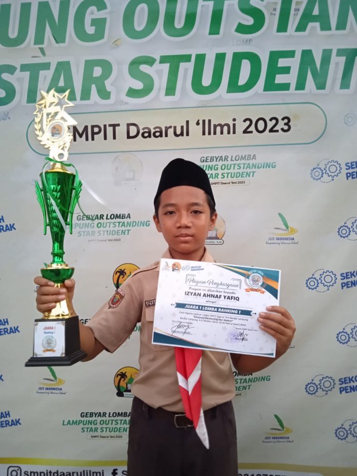 Usaha tak akan menghianati hasil itulah perumpamaan yang pas buat mas Izyan sapaan akrab ustad-ustazah maupun teman-temannya di kelas 6 Abu Bakar Ash Shiddiq, dari 26 peserta yang mewakili dari seluruh sekolah SD/SDIT se-Provinsi Lampung, mas Izyan mampu mengalahkan dari perwakilan SDN 2 Gedong Air, SD Hadimulyo Metro dan SDIT Permata Bunda 1 yang masing-masing mendapatkan juara Harapan 1 hingga Harapan 3.