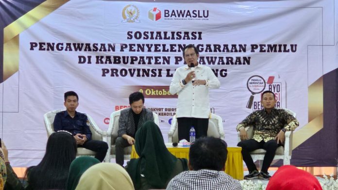 Pesawaran (HO) – Guna menciptakan Pemilu damai pada tahun 2024 mendatang, Anggota DPR-RI Komisi II H.Zulkifli Anwar bersama Badan Pengawas Pemilu (Bawaslu) dan Komisi pemilihan umum (KPU) mengelar Sosialisasi pengawasan dan pelanggaran pemilu di Kabupaten Pesawaran yang di gelar di Gedung Adora Desa Kurungan Nyawa Kecamatan Gedong Tataan, Senin (9/10/2023).