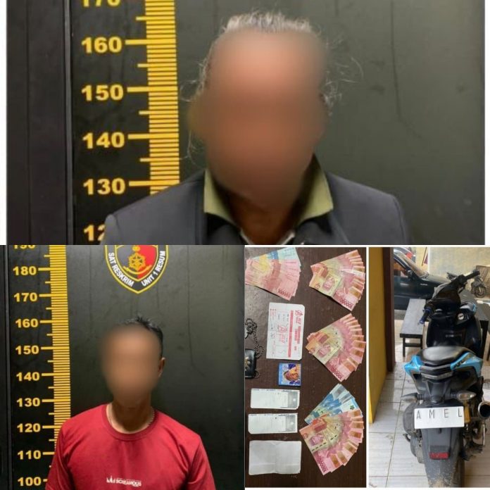 “satu buah nota pembelian HP OPPO A58, 2 (dua) buah struk Bank Bri, 1 (satu) buah amplop warna putih, 1 (satu) unit motor aerox dengan no pol : A M E L, 1 (satu) buah lencana PINRI, Uang tunai sebesar Rp. 3.550.000.- (Tiga Juta Lima Ratus Lima Puluh Ribu Rupiah) dan Kedua pelaku dijerat Pasal 368 KUHAPidana,” tegasnya. (Rizal)