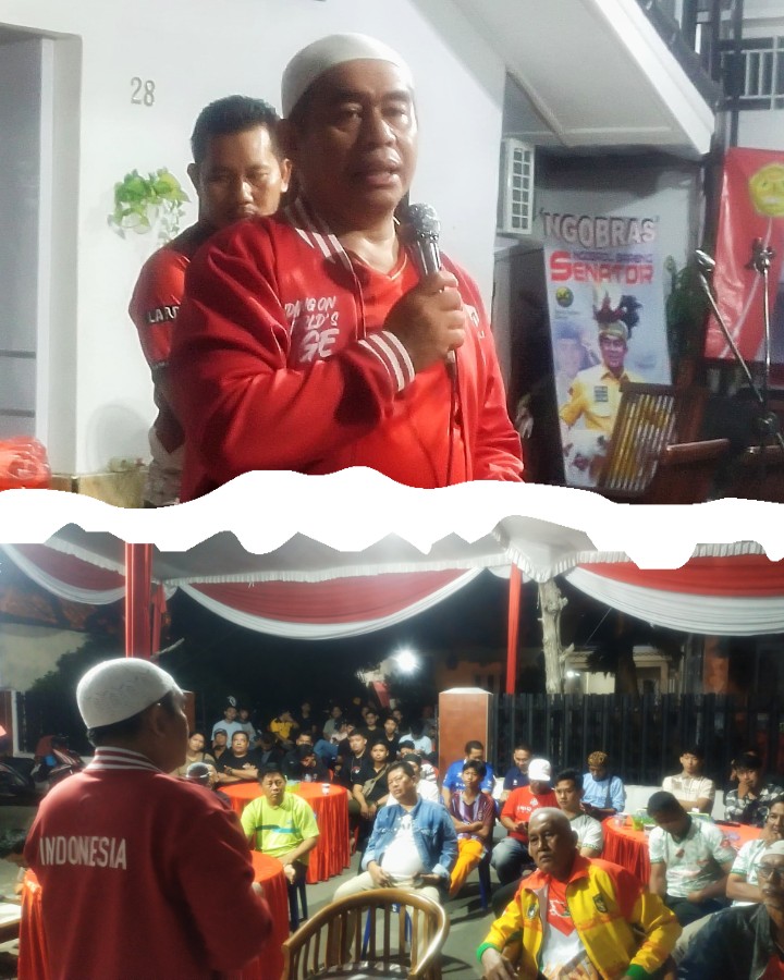 “Saya meminta doa dan restu kepada teman teman semua, agar cita cita kita dan kembali mendapatkan amanah anggota DPD RI bisa terwujud kembali, kodenya sudah ada, coblos nomor 6 sesuai yang memberikan gol untuk timnas tadi yaitu nomor punggung 6.” Tambahnya sambil bercanda dalam sambutan penutup setelah laga usai.