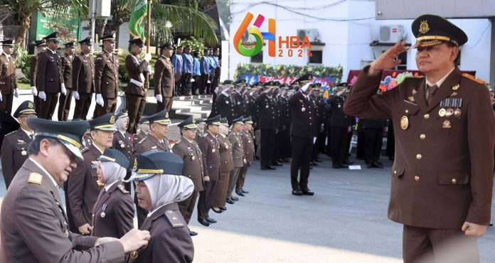 Lampung (RN) – Kejaksaan tinggi Lampung Gelar upacara hari Bhakti Adhyaksa yang ke-64 kegiatan di gelar di halaman Kejati Lampung dengan tema Akselerasi Kejaksaan Untuk Mewujudkan Penegakan Hukum Modern Menuju Indonesia Emas, Senin (22/07/2024).
