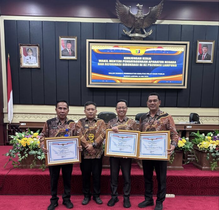 Bandar Lampung (RN) – Kabupaten Pesawaran mencatat prestasi membanggakan dalam peningkatan kualitas pelayanan publik. Dalam audiensi bersama Wakil Menteri Pendayagunaan Aparatur Negara dan Reformasi Birokrasi (PANRB), Komjen Pol. (Purn) Purwadi Arianto, yang digelar di Gedung Pusiban, Komplek Kantor Gubernur Lampung Kamis, (24/7/2025).