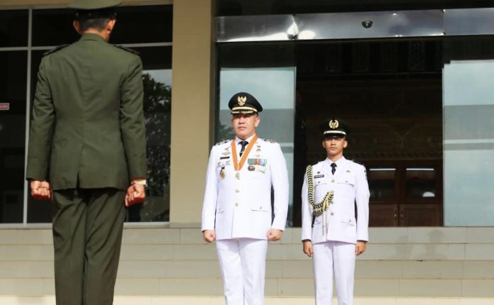 Bupati Pesawaran Dendi Ramadhona bertindak sebagai inspektur upacara, mengatakan peringatan HUT RI kali ini menjadi momentum bagi Pemkab Pesawaran untuk menguatkan semangat gotong royong.