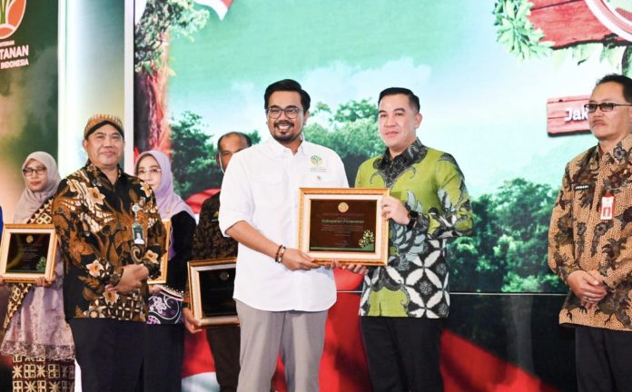 Penghargaan ini diberikan sebagai bentuk apresiasi atas kinerja pemerintah daerah dalam mendukung program perhutanan sosial yang dinilai berhasil menjaga kelestarian hutan sekaligus meningkatkan kesejahteraan masyarakat.