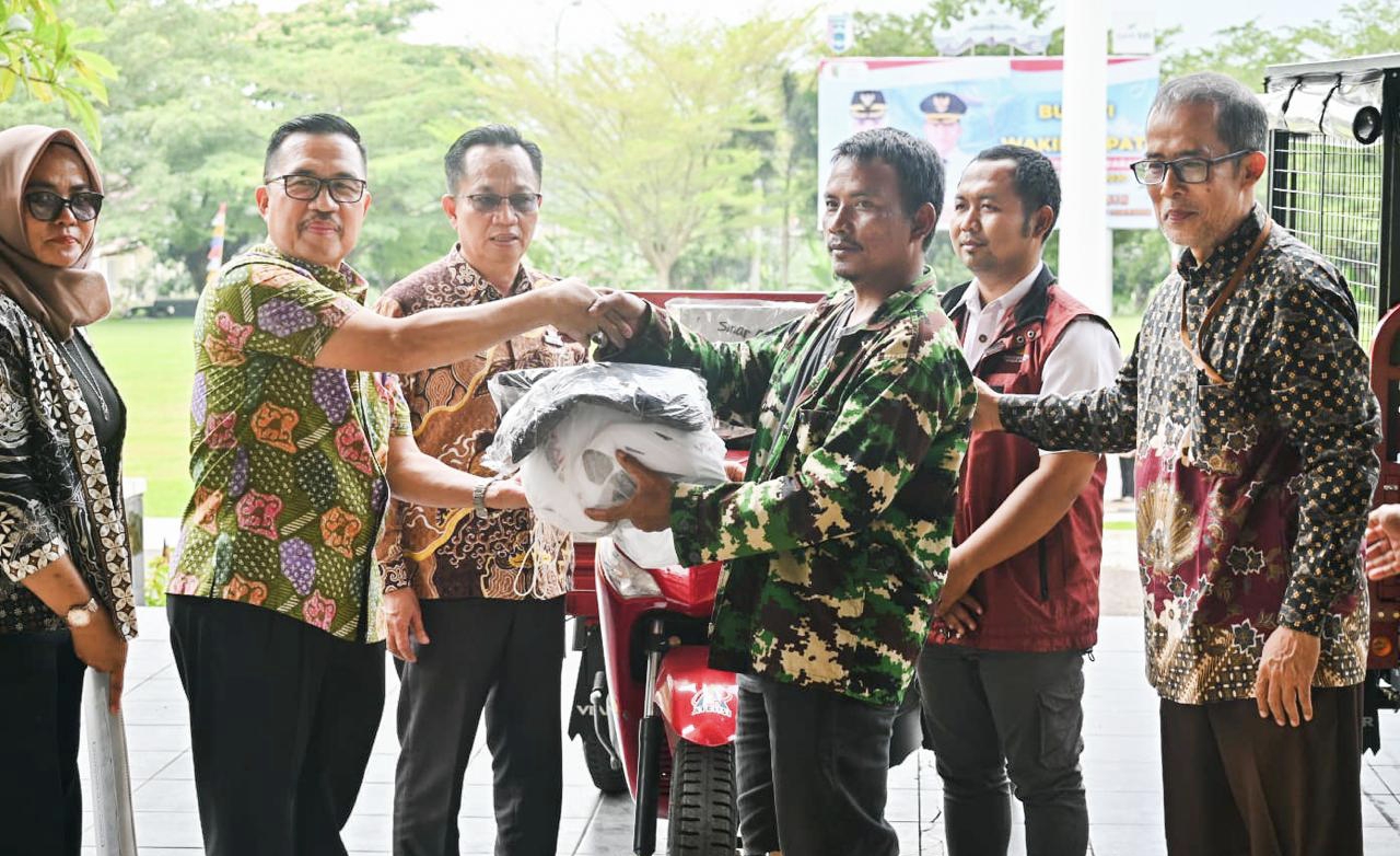 Pesawaran (RN) – Pemerintah Kabupaten Pesawaran menyerahkan bantuan lima unit kendaraan motor roda tiga yang diberikan kepada masyarakat penyandang disabilitas. Penyerahan dilakukan langsung oleh Sekretaris Daerah Kabupaten Pesawaran, Wildan didampingi Asisten Pemerintahan dan Kesra Sunyoto dan Kadis Sosial M. Zuriadi. di Halaman Kantor Bupati Kamis, (28/8/2025).