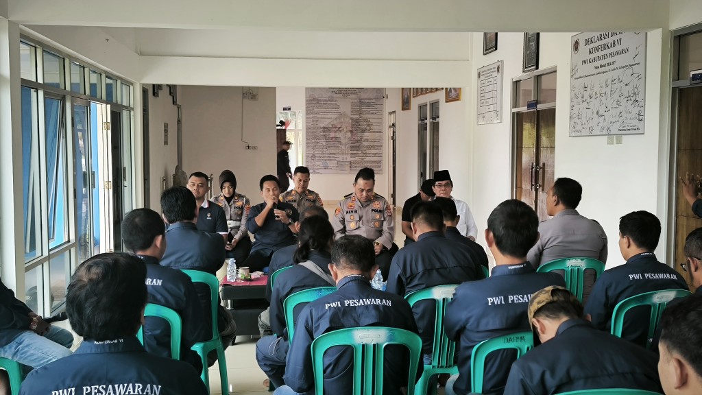 Pesawaran (RN) – Kapolres Pesawaran AKBP. Alvie Granito bersama jajaran sambangi Balai Persatuan Wartawan Indonesia (PWI) Kabupaten Pesawaran.