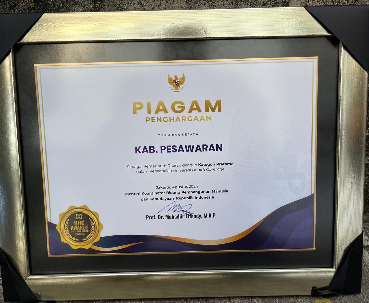 Pemkab Pesawaran Raih Penghargaan UHC Dari Pemerintah Pusat